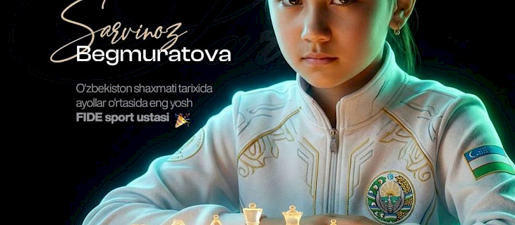 Узбекская шахматистка Сарвиноз Бегмуротова в возрасте 12 лет удостоилась звания мастера ФИДЕ среди женщин (Woman FIDE Master). Об этом написал первый заместитель пред...